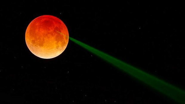 Tranquilos, no es la Estrella de la Muerte dirigida por Dark Vader que está intentando acabar con el planeta más próximo. Esta imagen corresponde a un eclipse lunar y el rayo verde es simplemente una investigación científica más. Concretamente, corresponde al láser que utilizan desde el telescopio del Observatorio Apache Point (Nuevo México). Una práctica que sirve para medir la distancia exacta de la Luna a nuestro planeta con la mayor precisión posible. El objetivo de este curioso rayo es el retroreflector instalado nuestro satélite por los astronautas de la misión Apolo 15.